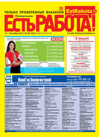 Хотите в кратчайшие сроки найти грамотного специалиста? Мы поможем! У работодателей и кадровых агентств Набережных Челнов есть уникальная возможность – размещение вакансий сразу во всех наших изданиях: на сайте EstRabota.ru, в еженедельном выпуске газеты «Есть Работа!» (выход каждый понедельник и четверг) и в еженедельном выпуске «Есть Работа! Дайджест» (выход каждый понедельник). Посмотрите условия, цены и возможности.