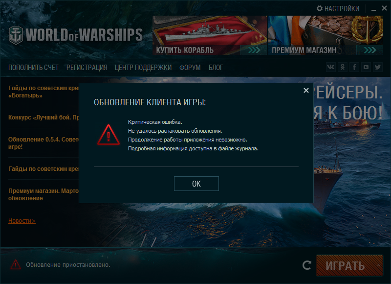 Ошибка World of Warships-решение проблем при запуске и обновлении