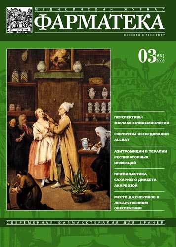 «Фарматека» – рецензируемый научно-практический медицинский журнал, адресованный терапевтам, педиатрам, кардиологам, эндокринологам, гастроэнтерологам, пульмонологам, дерматологам, акушерам-гинекологам, урологам, онкологам, неврологам, ревматологам и врачам других специальностей.