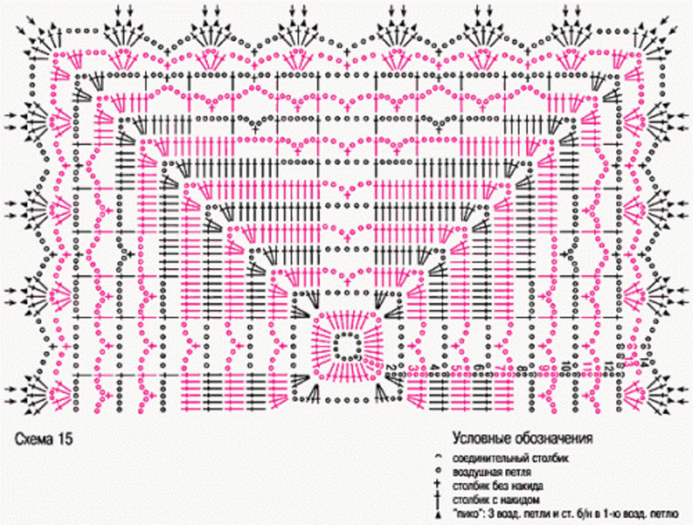 Квадратная салфетка "Анастасия". Схема вязания крючком ( ...) ...