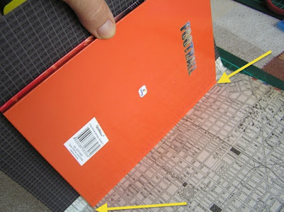 Положив на склеенные листы дневник, отмеряю 4-5 см от правого края дневника и обрезаю лишнее. То же самое делаю с задней крышкой дневника.