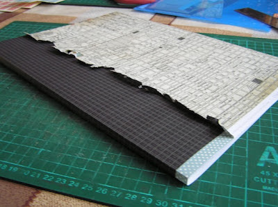 Приклеиваем форзацы с двух сторон. Стандартной ширины бумаги 30,5 см чуток не хватает - поэтому широкие поля обложки спасают.