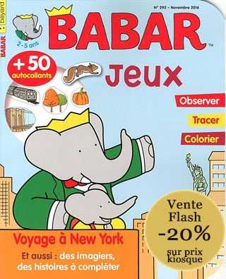 “BABAR” – журнал для детей от 3-х лет, и, прежде всего, для поклонников знаменитого слона Бабара, героя книги Ж.Брюнова, а также для тех, кто любит животных. Сказки о животных, игры, идеи для детского творчества, фотографии животных публикует это ежемесячное издание.