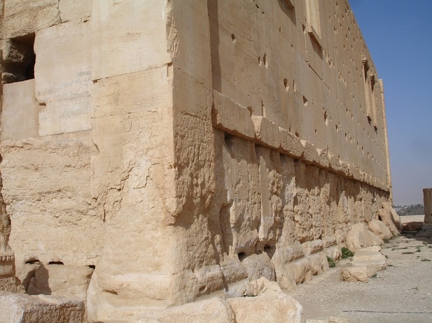 Самая примечательная особенность Храма Ваала и его колонн — дырки. Все дырки выкопаны в стыках между блоками. Кто до сих пор не понял, что это за дырки, смотрите любую монтажную работу с блоками — и увидите. Это обыкновенные монтажные закладки, стальные петли для стропания, которые удалялись сразу при монтаже. С рыхлыми известково-песчаными блоками, из которых сложено большинство стен и колонн, это не трудно.
