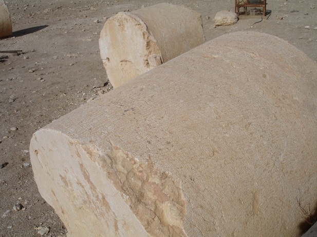 Кадр сделан практически случайно. Мимоходом, проезжая к главным пальмирским объектам, щелкнул Скляров или другой фотограф группы панорамку красивую. А эти замечательные мегалиты группу, наснимавшую сотни фотографий объектов Пальмиры со всех ракурсов и дистанций, не заинтересовали. Исследователи великих наследий працивилизации направились исследовать великие наследия дальше. Полный снимок.