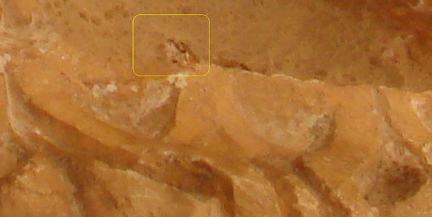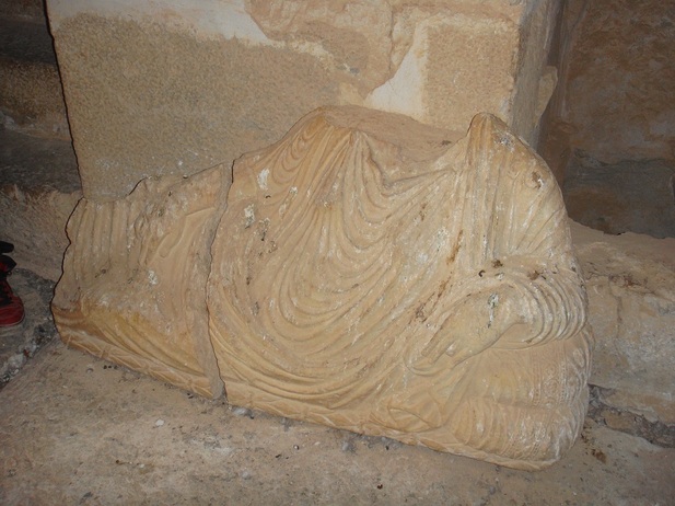Здесь дотошный следопыт щелкнул то, что не надо было. Группа ЛАИстов была в Пальмире не в статусе туристов, а по протекции в статусе «своих». Поэтому им показывали всё, открывали двери и в культовые места для всеобщего обозрения, и в места не для посещений туристов, в том числе в пальмирском некрополе. Там и щелкнул фотограф, воспользовавшись вспышкой, «древнее надгробие из мрамора». Красиво, хорошо, но проволоки торчат, каркас местами вылез. Экспонат для «реставрации» — замазывания-маскировки.