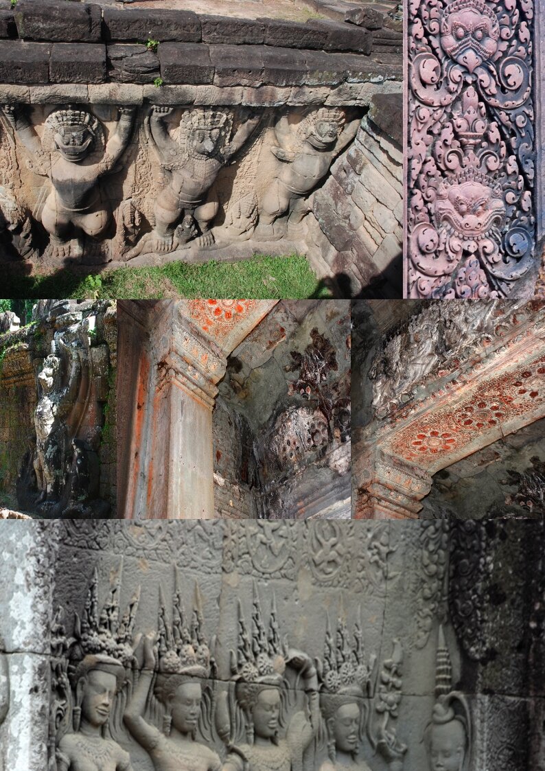 Что еще мы встретим в Ангкоре? Разумеется, наш старый знакомый собственной харей. Разумеется, поганью - зверосолнышком все уделано. И - присмотритесь к верхнему ряду небольших фигурок на барельефе. Те же девушки в репродуктивной позе. С последами и (или) плодами из надлежащего места. Тут еще до создания "памятника" по плану строительства истории качалась кровь, работали с репродукцией, создавали биоматериал для затваривания.