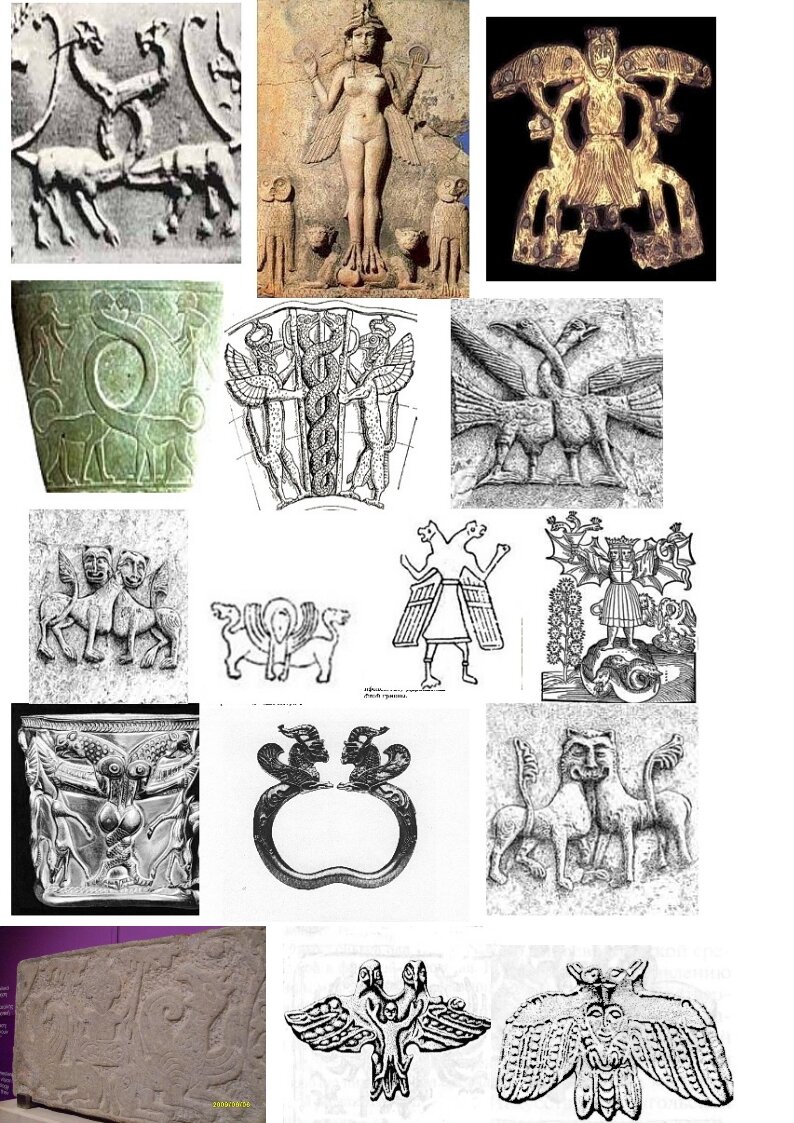 И снова к зверо-птичкам. На бесчисленных культовых изображениях народов, подвергнутых затвариванию, хорошо видно, что в истоке двуглавый орел происходит от слияния упырей, образующих таким образом совместную ДНК, она же "мировое дерево", "дерево жизни". Без долгих комментариев, просто ряд.