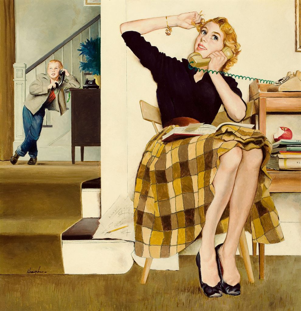 Illustration for “Eavesdropping on Sister.” Saturday Evening Post cover, February 9, 1957. George Hughes