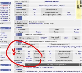 Само собой, требования, предъявляемые этими системами к журналам, бесконечно далеки от критериев ВАКовского списка. Кстати, многие журналы входят одновременно и в Web of Science, и в SCOPUS. SCOPUS считается чуть демократичнее – и пробиться в скопусовский журнал чуть легче. Зато публикация в журнале из Web of Science чуть престижнее и принесёт больше очков при рассмотрении грантовой заявки или для успешного прохождения отчёта для грантодателя. Хотя, в конечном счёте, понятия «престижа» и «влиятельности» следует относить к отдельным журналам, а не к информационным системам в целом.Список журналов SCOPUS размещён по этой ссылке