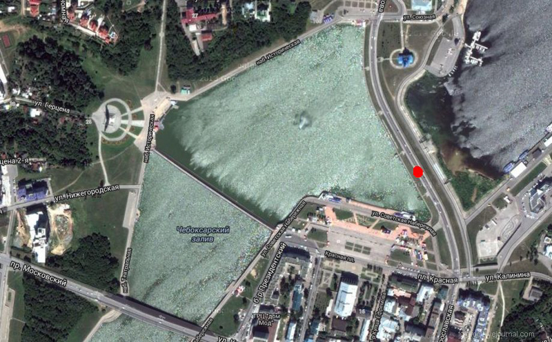 Фото 12. Точка «Огненная река».Опять же интересна только ночью – фары проезжающих машин превращают дорогу от Мегамола до Московсого моста и дальше в Огненную реку.Тут надо дождаться, чтобы было как можно больше транспорта, у меня не очень получилось..