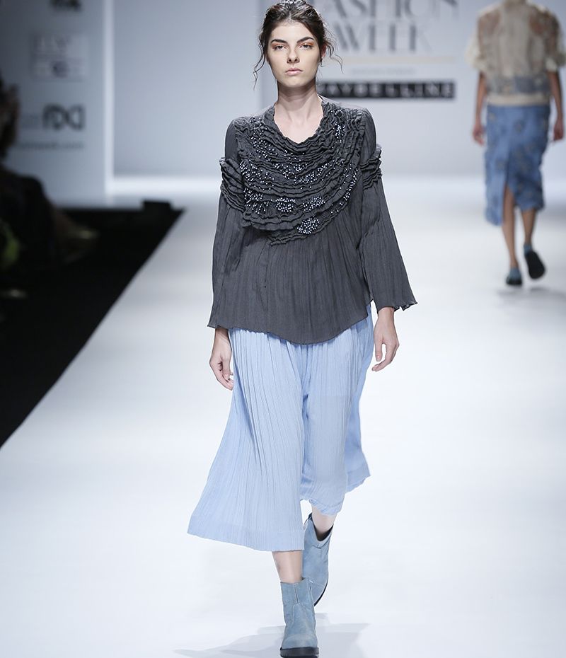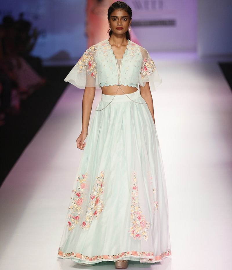 Маниш Малхотра женщина это тот, кто умен, носит индийские одежды с большим количеством стиля и в гармонии с международными стандартами. Чтобы внести разнообразие, dupatta и шарф заменяется куртки, не принимая от женственность «. «Индиго синий, слоновая кость, желтый являются основными цветами для моей коллекции; желтого цвета огромное количество в этом году», добавил он.