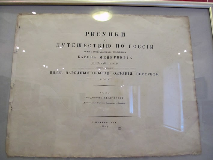 Немногие музеи могут похвастаться наличием в своих коллекциях альбома посла Священной римской империи барона Августина Мейерберга «Путешествие в Московию», которое он совершил в середине 1661 – 1662 годах. Впервые он был издан в 1827 году. В Музее изобразительных искусств Карелии такой альбом есть – 80 графических листов, зарисовки о жизни России в середине XVII века. 20 из них петрозаводчане могут увидеть на новой выставке «Путешествие в Россию», открывшейся 19 октября и посвященной 1150-летию российской государственности, которое отмечается в этом году, объявленном Годом истории.