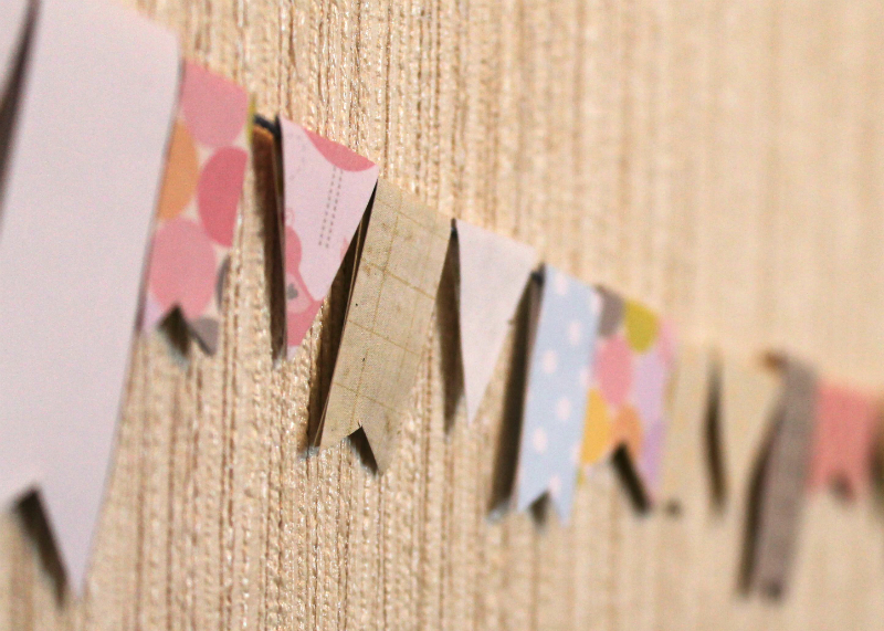 Длинные полоски скрапбумаги можно использовать для создания флажков, которые отлично украшают работы, особенно в американском стиле. Также они придут на помощь, когда нужно «штампануть» подписи для открыток, написать журналинг. Для создания флажков помимо всего прочего можно использовать треугольные остатки бумаги.
