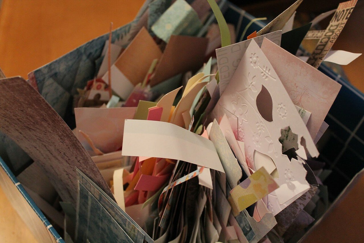 Доброго времени суток, дорогие наши читатели! Сегодня с вами я - Наташа-inata, поболтаем про обрезки?Для большинства скрапбукеров скрап-бумага основной источник вдохновения! Мы влюбляемся в новые дизайнерские коллекции, «отлавливаем» их на просторах интернета, после чего проводим профилактические беседы с жабой, «выгораживая» хомяка и аргументировано объясняя, почему она нам без нее не жить. И вот новая бумага в наших руках! Мы с любовью поглаживаем ее, пальцами ощущая волшебную текстуру, с трепетом вдыхаем аромат, перекладываем с места на место. И вот наступает момент, когда мы берем вожделенный листочек в руки и режем его. Иногда он уходит в работу целиком, а иногда от него остаются обрезки. И вот эти маленькие кусочки не дают покоя многим. Они порождают массу вопросов: хранить или выбрасывать? Если хранить, то как? И что потом с ними делать? Сегодня мы постараемся помочь вам найти ответы на эти вопросы.