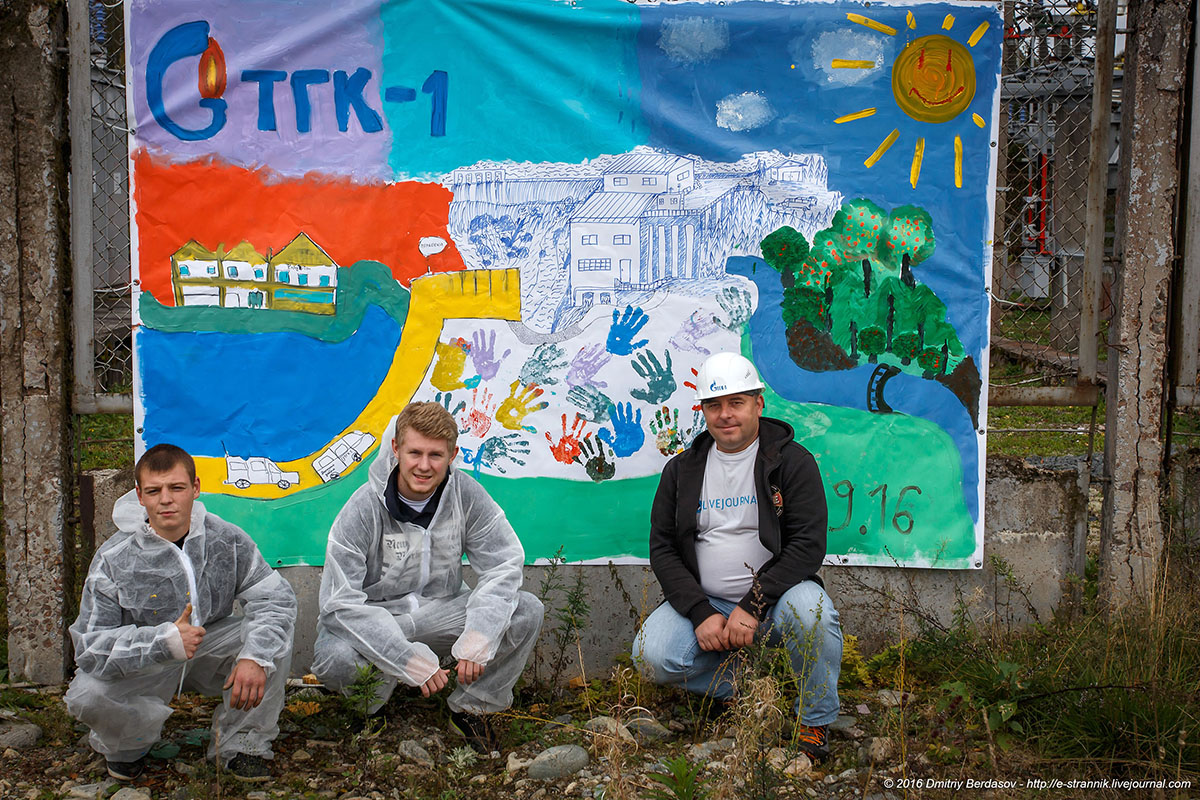 20. Кроме изучения особенностей гидростанции ребята проявили и свои творческие способности в компании с профессиональным художником Сергеем Ларионовым, который провел для них мастер-класс. На большом баннере была нарисована ГЭС Игнойла.