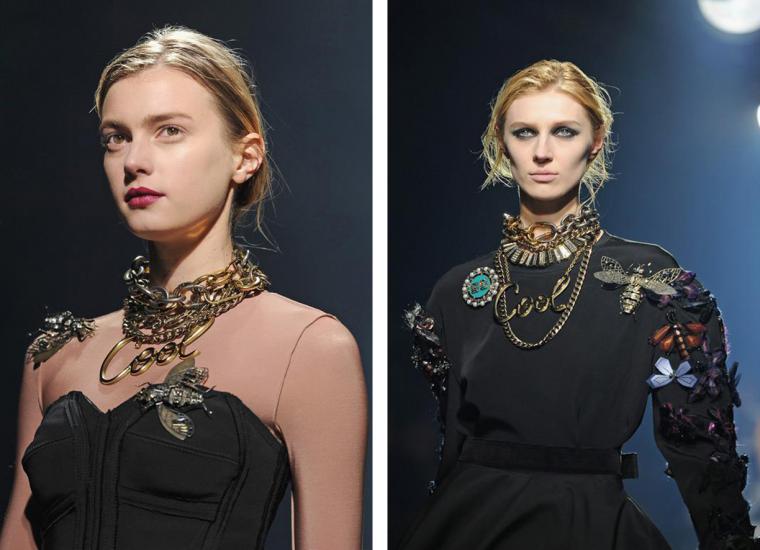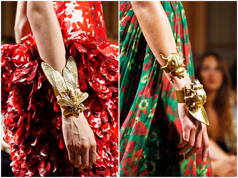 Хотелось бы отметить, что насекомые все так же актуальны. Я обратила внимание на принты с бабочками в последних коллекциях Valentino и коллекции Metiers D'art от Сhanel. Коллекцию украшений в виде огромных жуков выпустил модный дом Roberto Cavalli.