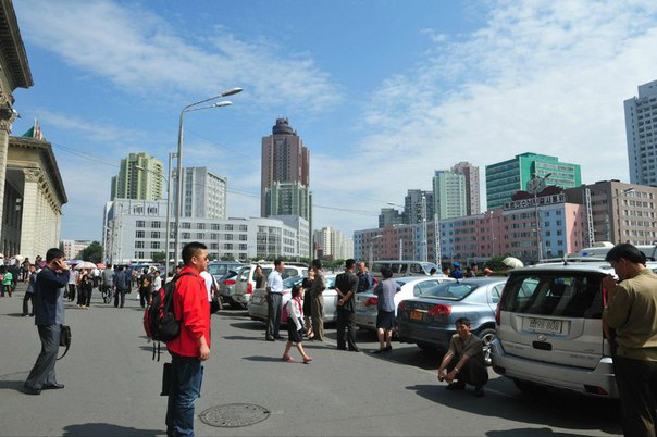 Пхеньян я посетил в октябре 2015 года - спецчартером АЛРОСА привезла ансамбль песни и пляски МВД РФ на гастроли в КНДР, на празднование 70-й годовщины Трудовой Партии Кореи,по личному приглашению Ким Чем Ына. Приём был оказан великолепный. Кстати говоря, руководитель ансамбля, генерал МВД В. П. Елисеев, единственный, наверно, иностранец в КНДР,который может законно носить обязательный для всех северных корейцев значёк с ликом КИм Ир Сена. Вечный президент лично приколол значёк со своим портретом на широкую генеральскую грудь,поражённый искусством ансамбля.Программа была рассчитана на 5 дней. Пока артисты выступали, экипаж развлекался экскурсиями. Возили нас на автобусе размером меньше ПАЗика, примерно одними и теми же маршрутами.Прогулки по городу в сопровождении двух гидов. В специальные показушные семьи и колхозы мы не ездили. Снмал в основном, из окна автобуса. Гиды смотрли недовольно.Притащил целый рюкзак фототехники, понимая, что вряд ли смогу оказаться в КНДР ещё раз. Это ввело в полный ступор местную таможню, но помог официальный статус делегации.Мобильники на границе не забрали, но они всё равно не работали в местной сети. Да-да, моильная связь в КНДР есть!.
