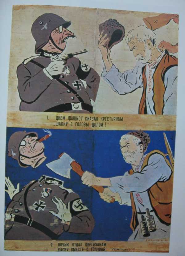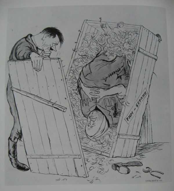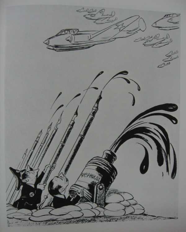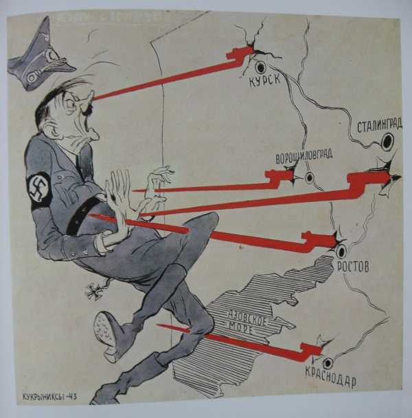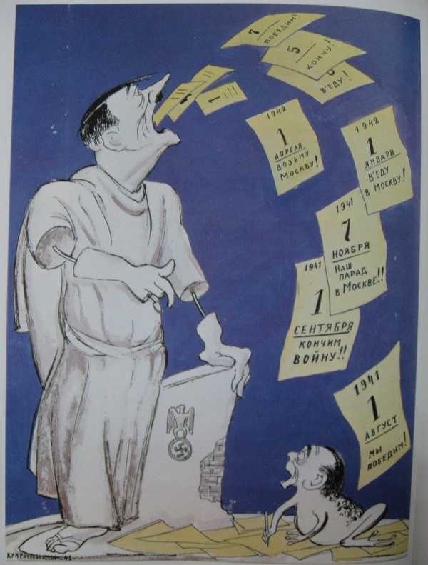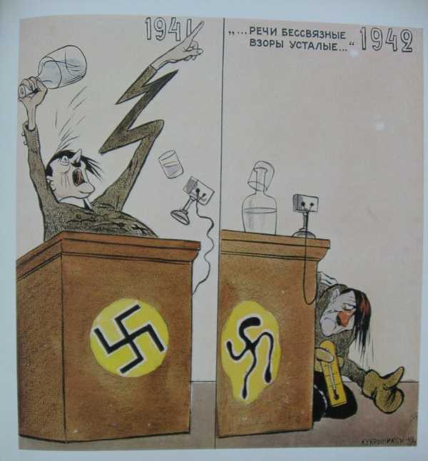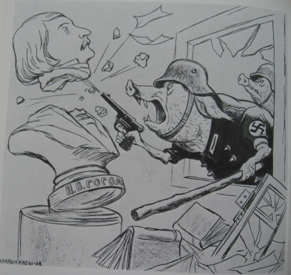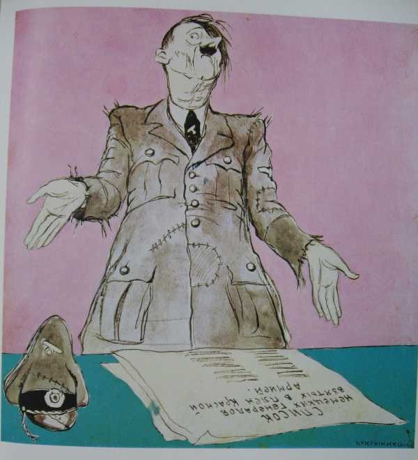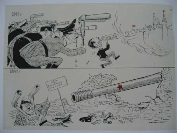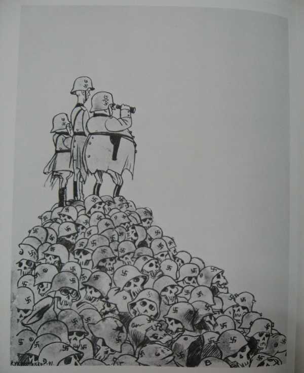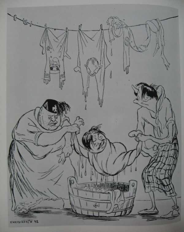 Всю войну Кукрыниксы провели, можно сказать, на передовой — они часто бывали на фронте, вплотную соприкасались с ужасной действительностью… И их вклад в победу над врагом был огромным — карикатуристы убивали его своим оружием — смехом и сатирой, поднимавшими боевой дух солдат…