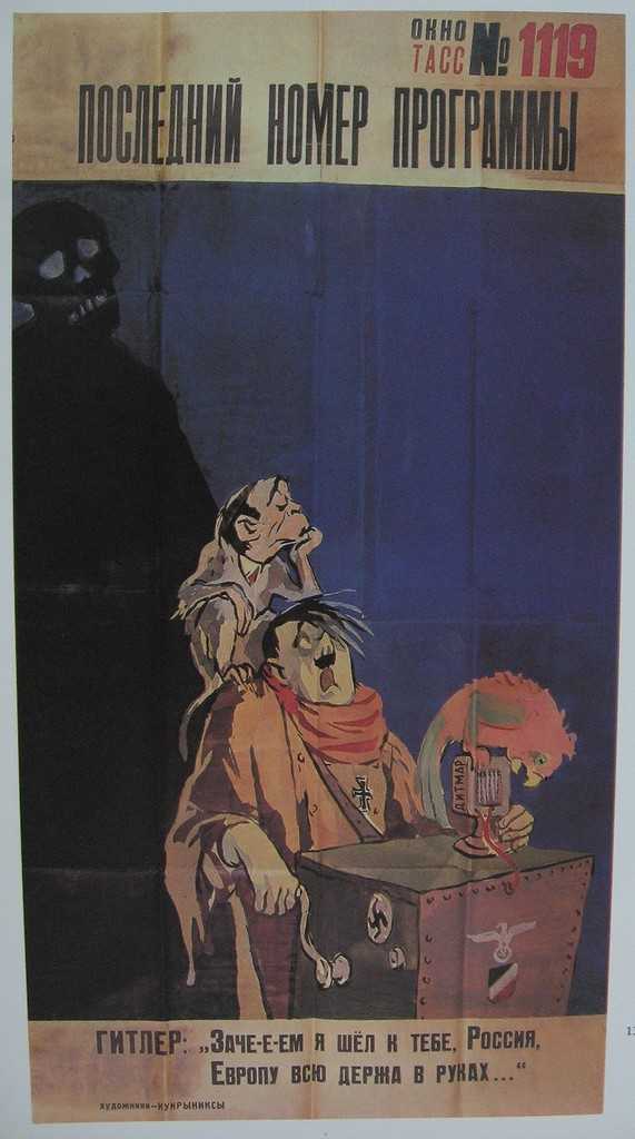По инициативе Кукрыниксов были созданы «Окна ТАСС» — плакаты, снабженные стихами и текстами. Все знаменитые художники и карикатуристы в «Окнах» объединили все свои усилия, чтобы выступить единым фронтом против фашизма. И эти плакаты действительно действовали на зрителей — не случайно они популярны до сих пор…