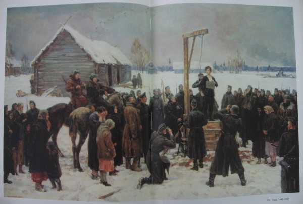 Кукрыниксы рисовали не только сатирические карикатуры. После смерти Зои Космодемьянской, они написали картину «Таня», вызывавшую слезы у зрителей… Затем появилось полотно «Бегство фашистов из Новгорода» — в 1944 году Кукрыниксы приехали в только что освобожденный Новгород, варварски разрушенный гитлеровской армией — был разбит памятник «Тысячелетие России», полуразрушен Софийский собор. Свои переживания Кукрыниксы передали на картине…