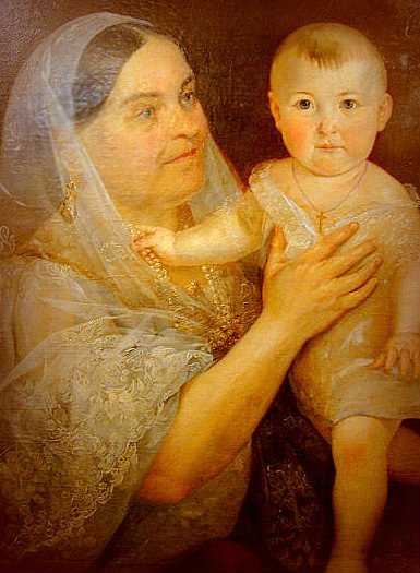 Т.А.Нефф (?). Портрет Д.Е.Пожарской с ребенком. 1850 (?) г.