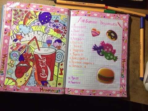Когда внешний вид и первая страница готовы – дальше можно писать об интересах, хобби, любимых фильмах и героях, вкусняшках, любимой музыке, рисовать и вклеивать фотографии распечатки или вырезки из журналов – писать обо всем, что вам интересно, полная свобода действий!