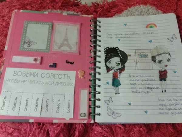 Лет так двадцать назад, личный дневник вели в общей тетради. И для украшения использовались разноцветные ручки, вырезали из журналов красочные иллюстрации, а также фантики от жевательных резинок и приклеивали их в дневник. Ну и конечно же рисовали от руки. Таким образом придавали своему верному другу красоту. Сейчас же все конечно иначе. И так, я предлагаю Вам рассмотреть следующие варианты по оформлению личного дневника внутри своими руками.