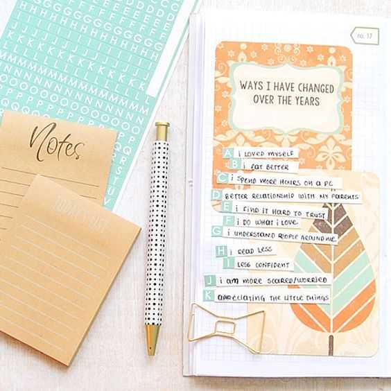 Очень красиво смотрится оформление личного дневника в виде разных форм карточек сделанных из цветной бумаги либо картона. На карточках пишут свои мысли, цитаты, события и т.п.
