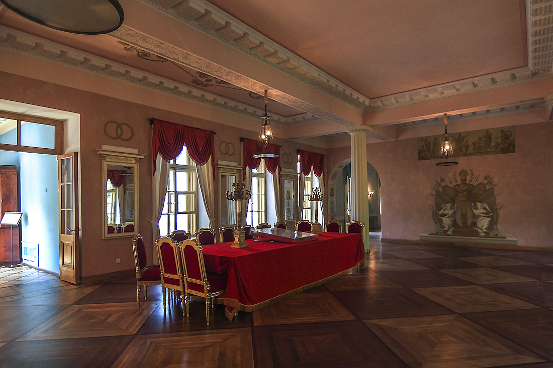 2. Аркой с крытым переходом лицей соединился с дворцом - результат планов по обучению здесь Великих Князей. В 1917 году лицей был закрыт, но музеем он стал лишь в 1947 году, причём для этого пришлось полностью восстанавливать внутреннюю обстановку, ведь после войны здание представляло собой голые стены. Всё, что мы видим сейчас, воссоздано коллективом под руководством архитектора А. А. Кедринского.