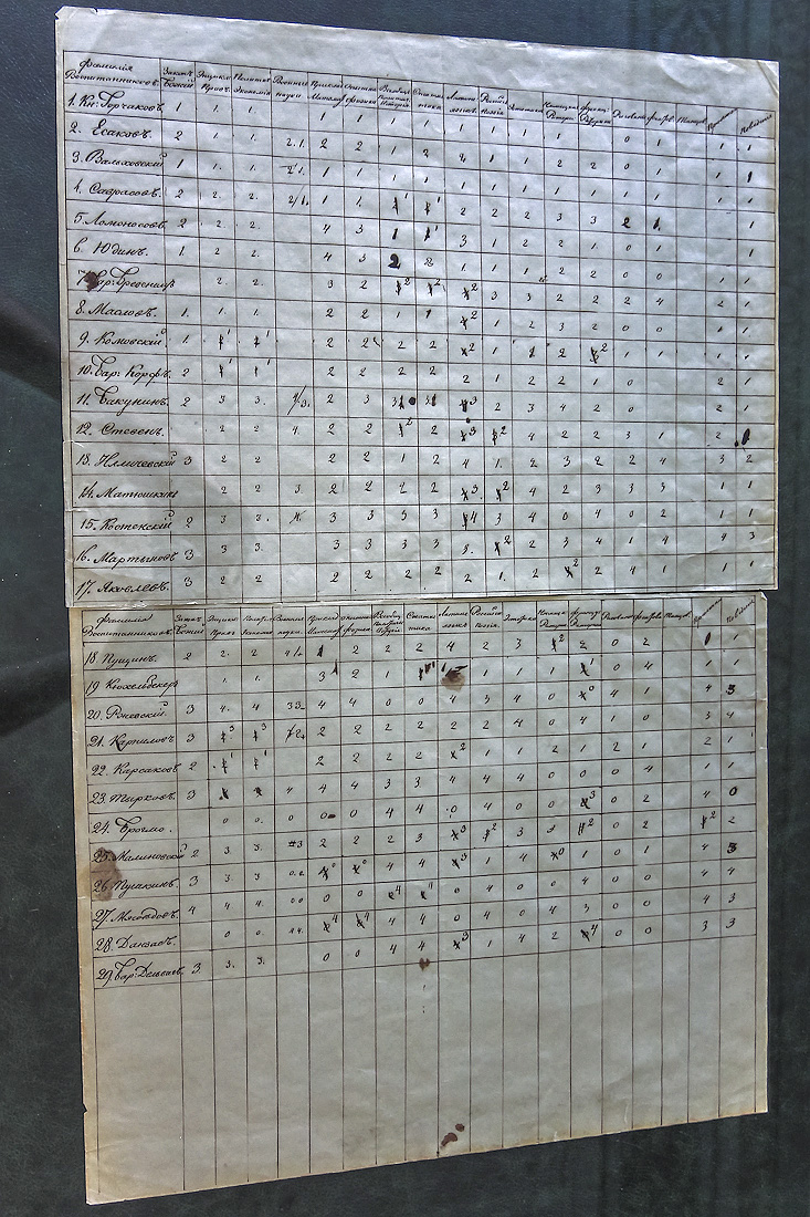 39. Таблица успеваемости. Пушкин был на 26-м месте из 29-ти. Самый прилежный из учеников, князь Горчаков и по службе преуспел больше других - дорос до министра иностранных дел и канцлера.