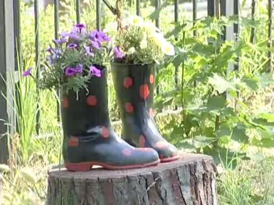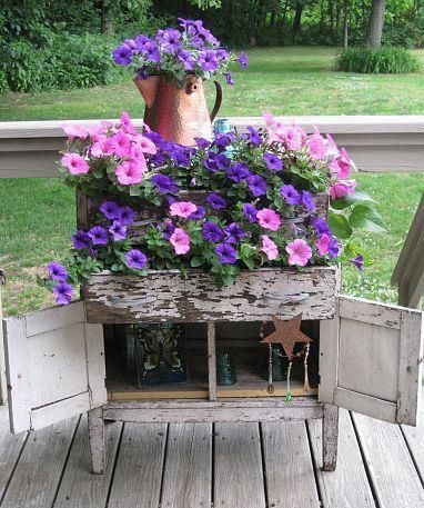 Не нравится обувь? Сделаем клумбы в старых комодах, тележках, лестницах и т.д.