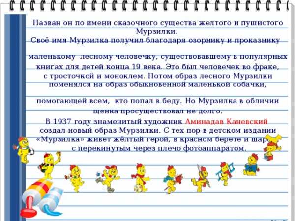 Назван он по имени сказочного существа жёлтого и пушистого Мурзилки .