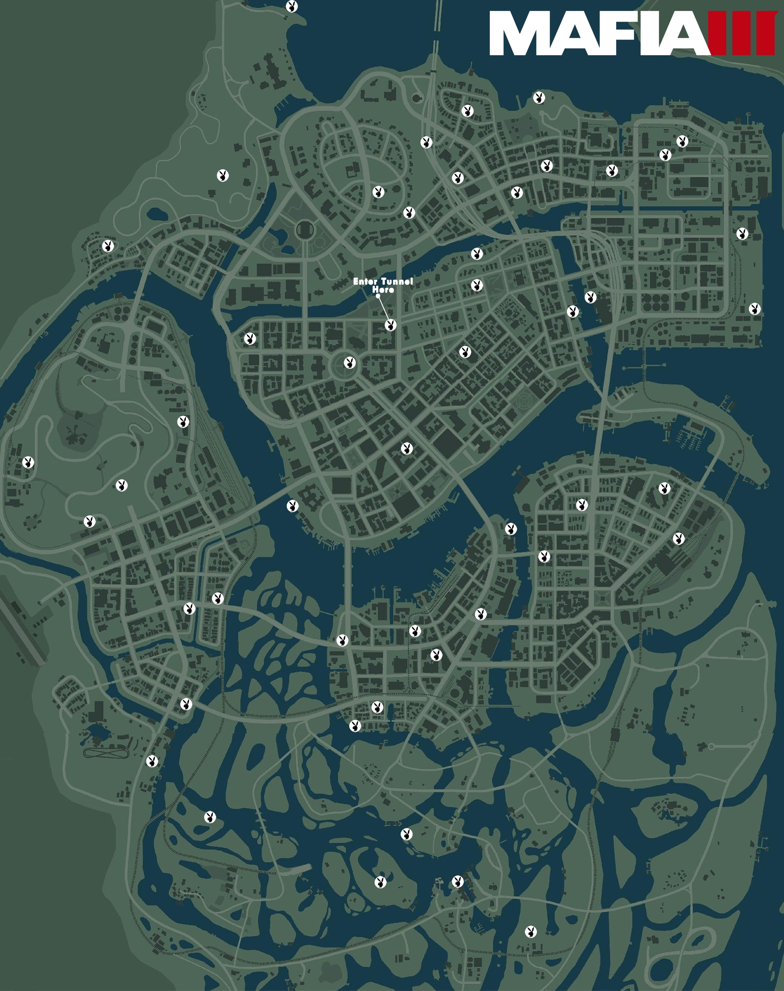 Что касается местонахождения журналов "Плейбой" в Mafia 3, то некоторые журналы будут находится в доступных местах, то есть совершенно не спрятаны, например в гаражах на полках, на столах в офисах, или на барных стойках разных салунов. другие же журналы будут уже спрятаны несколько лучше - в разных тайниках или даже в канализации. На общей карте, даже в увеличенном масштабе мы не увидим журналов "Плейбой". Они будут видны на карте только при приближении к ним игрока, тогда, когда Линкольн Клей, будь то пешком или на автомобиле, окажется в "зоне" журнала. На большой карте журнал будет обозначен синим квадратиком. На мини-карте, журнал "Плейбой" будет обозначен всем известным логотипом - голубой головой кролика.