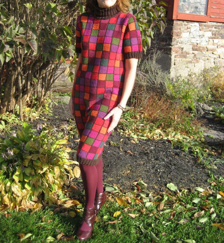 Вязаное платье простой резинкой из французского журнала Филдар. Правильнее сказать, выдоизмененная модель свитера....