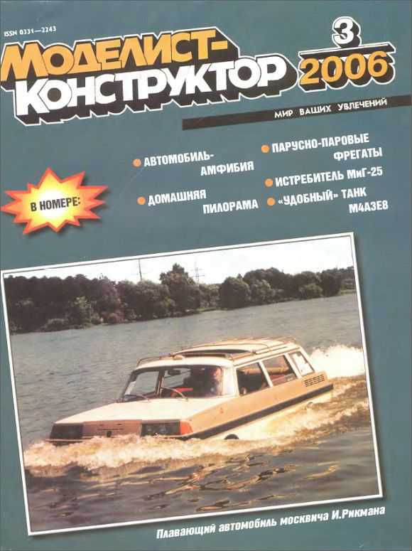 Содержание журнала "Моделист-конструктор" №3: Автомобиль, умеющий плавать. Подробное описание, процесс сборки, чертежи и фотографии самодельного автомобиля-амфибии «Ихтиандр-2».
