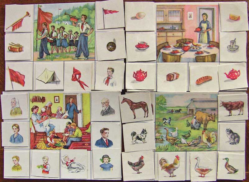 Лично у меня не было подобных игр, но некоторые из них я очень хорошо помню по моим знакомым и по какому-то детскому санаторию.Ребёнку же повезло больше: весь этот игровой раритет ему обломился от некой, более бережливой, советской семьи.Это что-то совсем древнее.