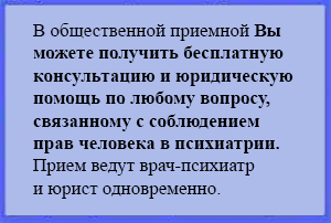 - Борьба за соблюдение прав лиц с психическими расстройствами, за исполнение закона о психиатрической помощи, прежде всего, самой властью, не исполнившей его статью 38, которая является гарантией исполнения закона для пациентов психиатрических стационаров. Наконец, за права недееспособных, — самой уязвимой категории граждан.