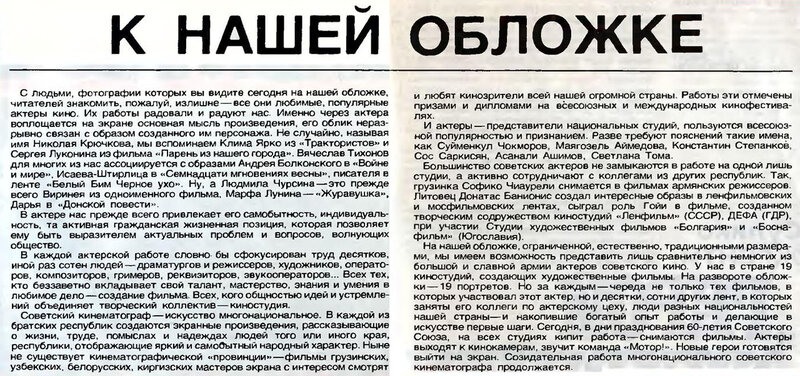 Советские актёры на обложках журнала «Советский экран» за 1982 год - 1922