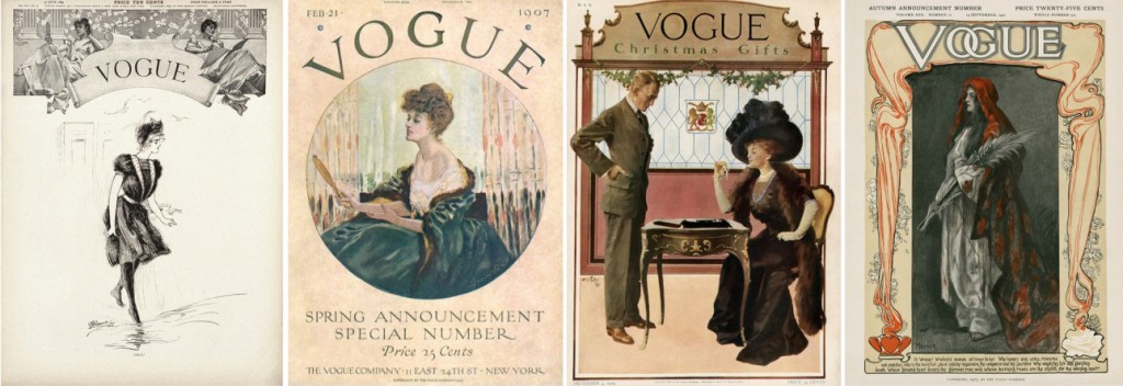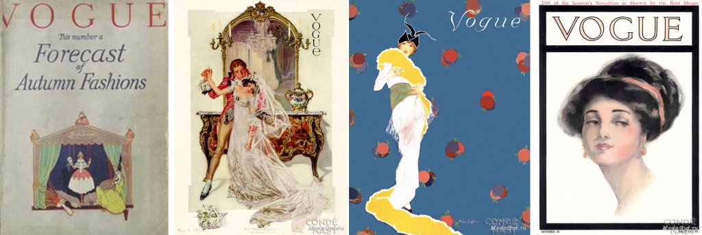 Обложки журнала “VOGUE” – 1899, 1907, 1909, 1909 годы.