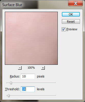 На самом деле, подойдет любой Блюр, но Surface умный - регулируя значение Threshold можно указать, какие области оставить неразмытыми. На моем примере видно, что глаза, губы и нос остались не размытыми. Это облегчит нам задачу в дальнейшем.