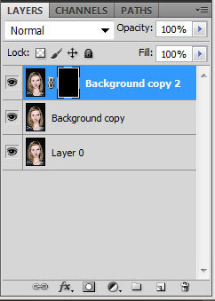 - Самое интересное — зажимаем alt и жмем на клавишу добавления маски к блерному слою. Получаем черную маску. По которой уже прорисовываем полупрозрачной кистью все те места где содержится кожа, чтобы с блерного слоя проецировалась только кожа. Это нужно делать очень аккуратно.