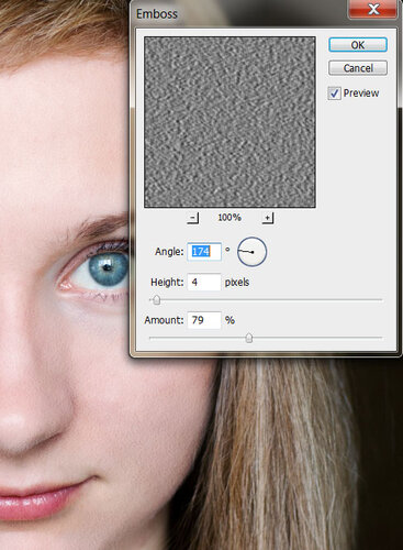 4. И, наконец, фильтр Filter -> Stylize -> Emboss, который сделает шум "объемным", более похожим на рельеф кожи.