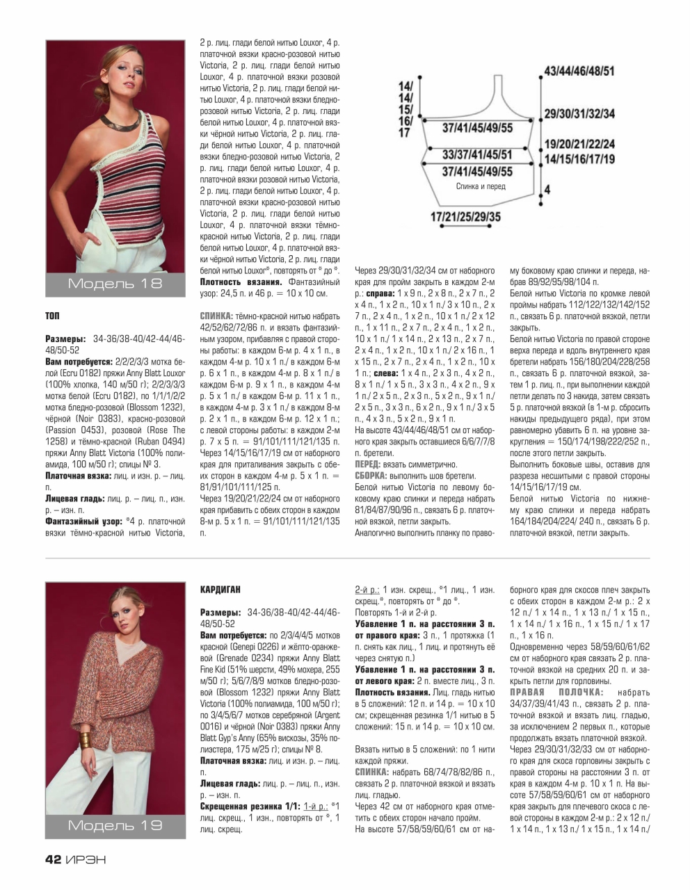 Первый в России журнал, посвященный французской вязаной моде В номере демонстрируется эксклюзивная зимняя коллекция вязаной одежды от французских дизайнеров, выполненная из высококачественной элитной пряжи ANNY BLATT и BOUTON d'OR, производимой во Франции компанией, признанной мировым лидером в этой области, и которая уже есть на российском рынке.Все модели, публикуемые в журнале «ИРЭН», — это настоящая высокая мода из Франции.