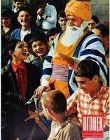 А вот каким этот снимок увидели читатели «Огонька»:В семье шофера Свалявского леспромхоза Эрнста Вагнера. Жена Клара, сын Федор, дочь Катя, фото Николая Козловского, 1954 год:«Шофер Свалявского леспромхоза Эрнст Вагнер только что кончил смену. Но дома его ждет новая „работа“: нужно помочь жене выкупать дочь»,– писал «Огонек», рассказывая о новом, социалистическом быте Закарпатья, только лет 10 как присоединившегося к советской семье народов. Черты новой жизни в леспромхозе налицо: во-первых, нет профессии лесоруб, есть электропильщики, машинисты лебедок и трактористы трелевщики. Во-вторых, социалистическое планирование положило конец расхищению лесных богатств. Но и традиции тоже живы – за лентами шляп работники леспромхоза носят, как и их отцы, зеленые веточки. «Совсем иной стала их жизнь»,– подытоживает «Огонек».Смотр молодых исполнителей в Белорусском драматическом театре им. Янки Купалы. Минск. Фото Михаила Савина, 1953 год:ДМБ-1959:Меня очень заинтриговало время создания этой фотографии, но к счастью, мне почти сразу она попалась на обложке журнала «Огонёк»:Московский инструментальный завод. Рационализатор кузнец Крыгин Иван Васильевич и конструктор Букашкина Нина Юрьевна, помогающая ему в осуществлении его предложений. О. Кнорринг, 1953 год:Гвардии младший сержант В. Агапов — командир одного из лучших расчетов Н-ской гвардейской части. Фотографы Г. Макаров, А. Становов, 1952 год:«Cтарший сержант В. Перекрасов в дозоре. Граница не ведает сна», Николай Веринчук, 1954 год:Кучер Льва Толстого Иван Егоров и пионеры, 1954 год:Увы, автор снимка не указан.