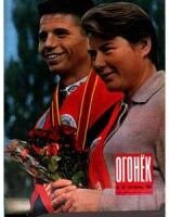 Для пекаря московской фабрики «Большевик» С.И. Мельникова 1950 год закончился удачно — его большой семье дали новую квартиру. О нем и других новоселах рассказывал «Огонек». После войны люди въезжали в новые квартиры. И тяжелая послевоенная жизнь не мешала им быть счастливыми. Вот у пекаря Мельникова — трое ребятишек. А у мастера Горьковского автозавода им. Молотова Николая Григорьевича Корнева — пятеро. Самые маленькие — близняшки Зина и Таня. Но все рекорды побил сторож автозавода Иван Васильевич Зубрилин — у него девять детей. Владимир и Жанета Савицкие — он мастер, она техник-проектировщик — только поженились и вот ждут пополнения. А в соседней квартире, где живет семья инвалида войны Алексея Ивановича Киреева, спит малыш. Дома с ребенком жена Киреева, сам же хозяин благодаря советским врачам восстановил утраченное на войне зрение и теперь отдыхает в санатории.Каток, фотограф Юрий Кривоносов, 1956 год:«Ты меня не укусишь?». Галина Санько, 1955 год