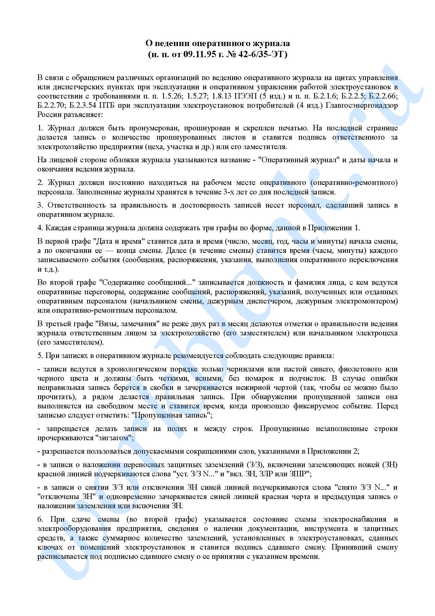 Рекомендации Главгосэнергонадзора России по ведению оперативного журнала