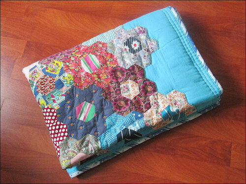 Я очень давно хотела иметь такое одеяло , сшитое в технике "Пэчворк". У меня был совсем небольшой опыт, шила простенькие покрывала , без синтепона. Вообщем, навыков в лоскутном шитье-ноль. Просматривая в интернете МК, заинтересовалась техникой " Соты" или " Бабушкин сад". В этой технике лоскутки сшиваются вручную.