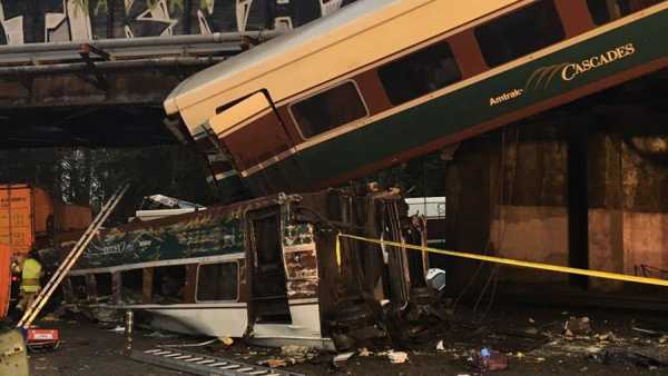 09:47 pm: Крушение поезда Cascades в штате Вашингтон В Штатах - крупное ж/д крушение. Амтраковский поезд Cascades сообщением Сиэтл - Портленд на скорости ~130 км/ч навернулся с эстакады прямо на автомагистраль (!), на выходе с железнодорожного моста. Причём это был первый рейс после реконструкции линии под более высокие скорости. После падения заблокировано движение по интерстейту. Пока есть сообщения о 3 жертвах, точное число раненых пока не подсчитано. (upd 22.20 - уже 6/77)