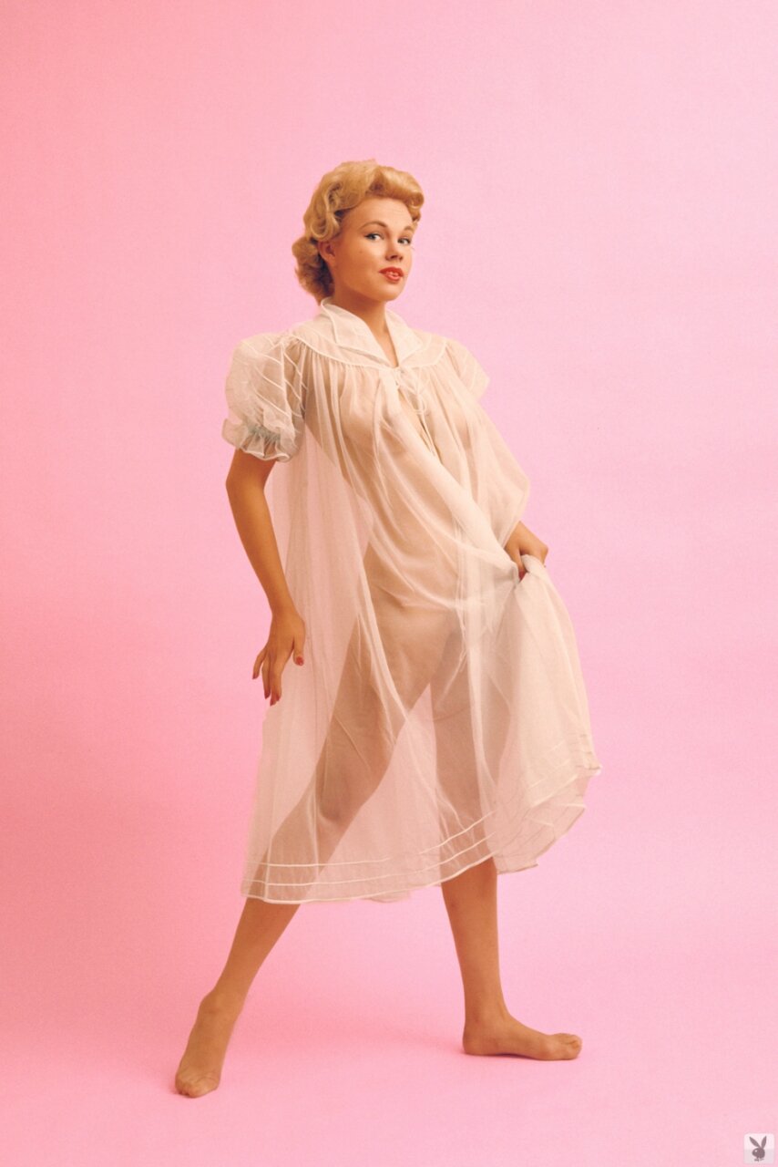 Кроме названия и символа Хэфнеру нужна была какая-то изюминка. Что-то, чем бы он мог заинтересовать читателей. Он вспомнил про то, как солдаты на войне приклеивали над кроватью картинки красивых девушек. Вот так и родилась идея печатать на развороте журнала фото очередной красотки. Знакомство с Джоном Баумгартом, владельцем компании по выпуску календарей «с девушками» пришлось очень кстати. Он приобрел у него за небольшую плату фотографии молодой актрисой Джин Мортенсон (более известная какМэрилин Монро!) и поместил ее на обложку первого номера.